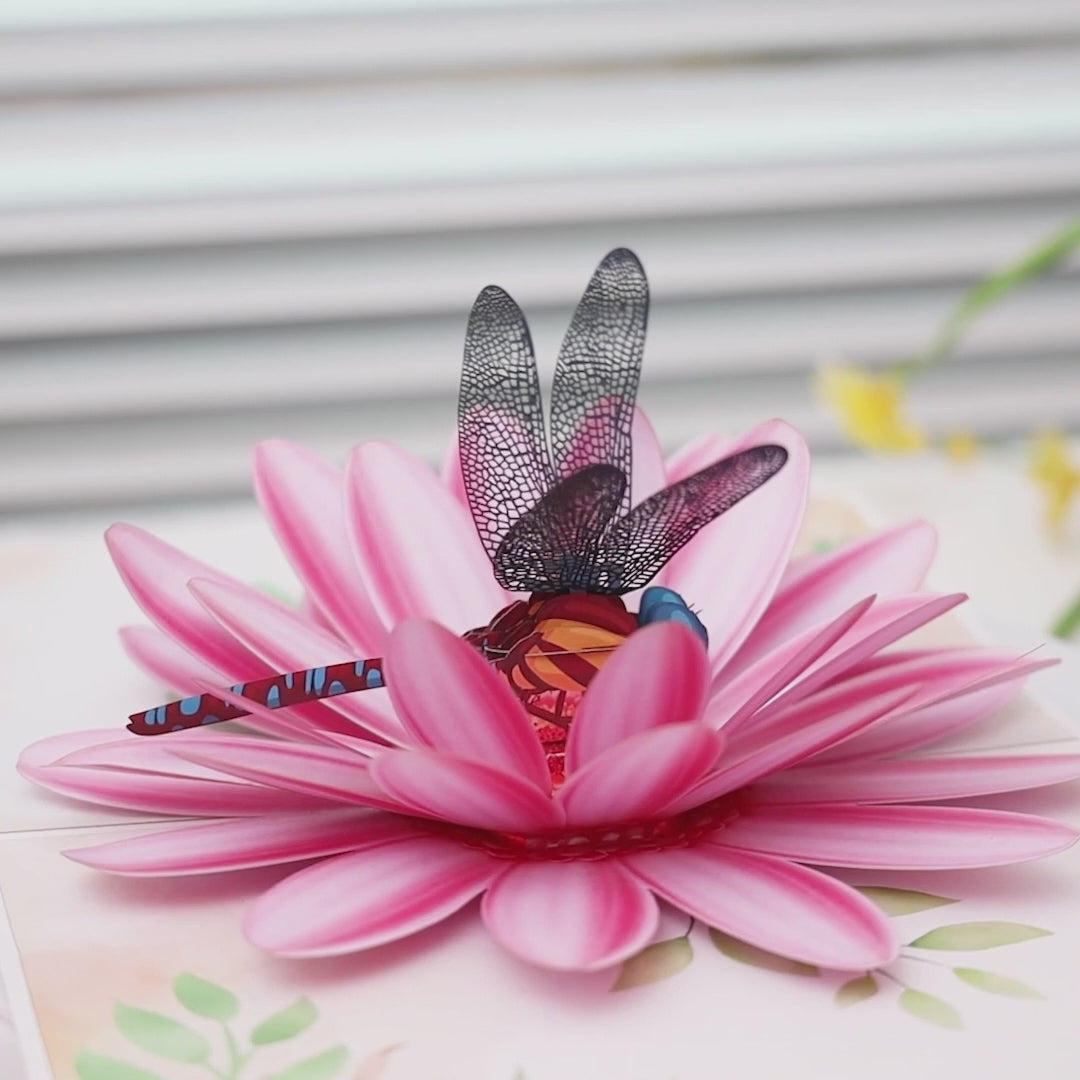 Our Dragonfly and Water Lily 3D pop-up card brings a touch of nature to any celebration.