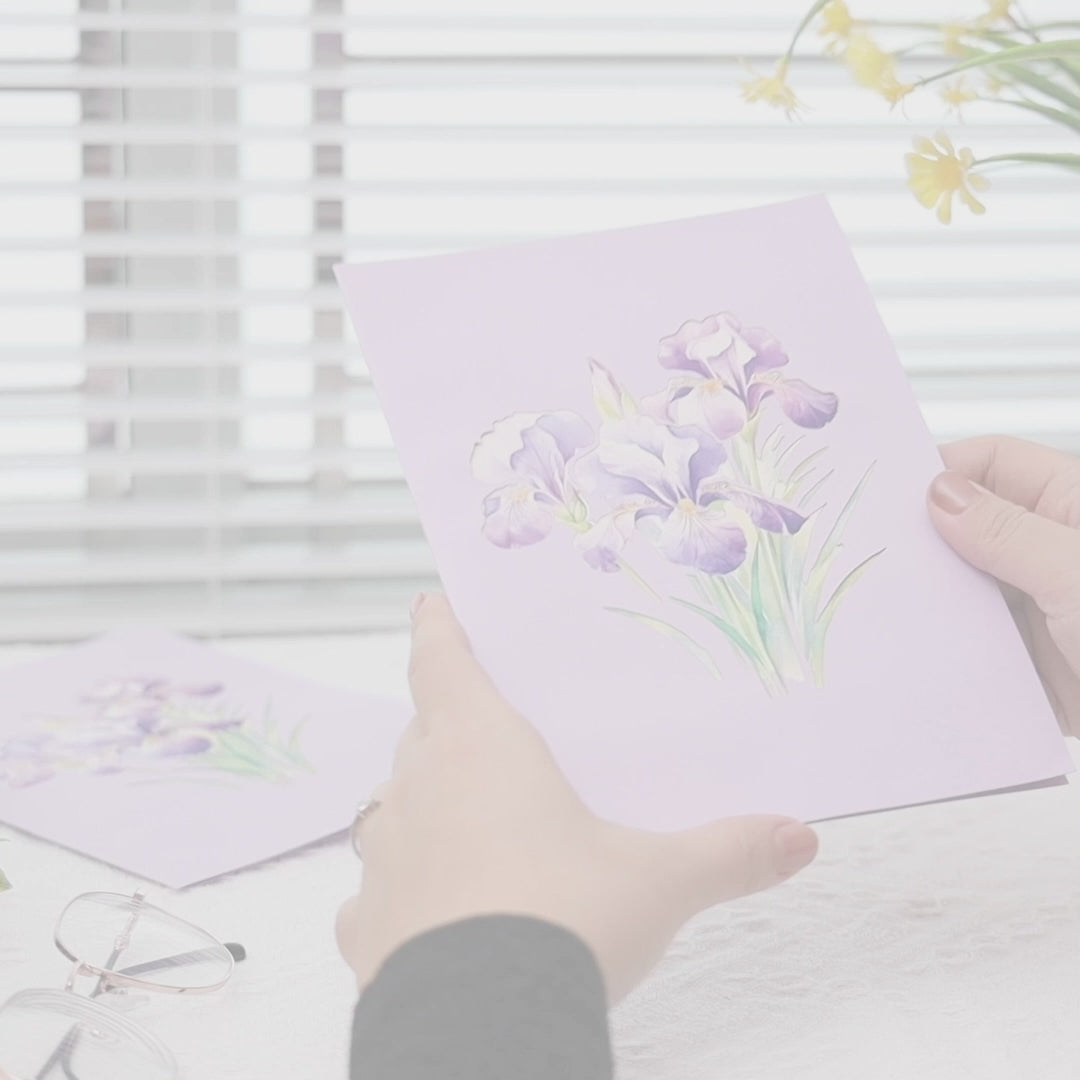 Make any occasion memorable with our Iris Bouquet 3D pop-up card, ideal for birthdays, thank-you notes, or Mother's Day!